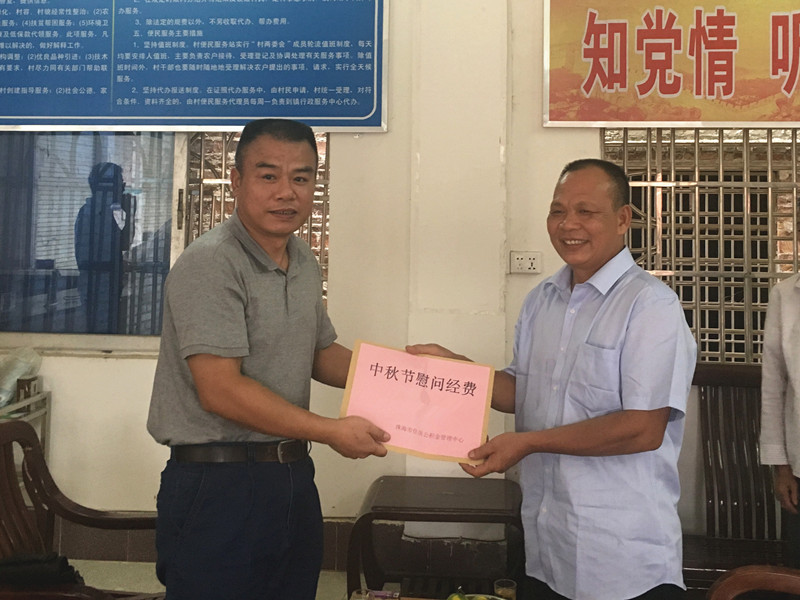 2017年9月28日,中心扶贫领导小组戴志锋副主任带队到对口扶贫村高州市荷花镇潘龙村调研新农村建设和扶贫工作,并送上中秋节前的慰问。